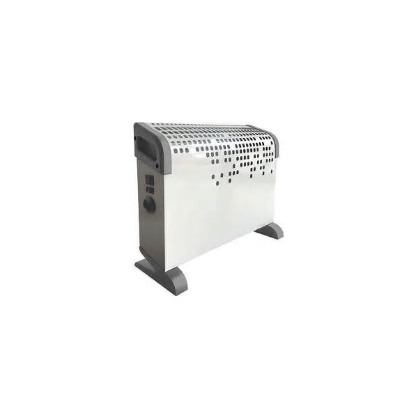 Convettore turbo. 3 livelli di potenza. Termostato di regolazione della temperatura. Funzione turbo. Spia di funzionamento. Sistema di protezione anti surriscaldamento. Dimensioni prodotto: L57XP14XH42 cm. Potenza 2000 W. Colore bianco/grigio. Resa 55 m³.